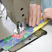 Passo 4: Pegue as duas outras faixas que sobraram, faça as bainhas como descrito no passo 1 de ambas e emende uma a outra pelas laterais.