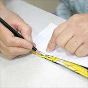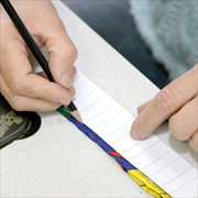 • Molde menor: papelão de 35 cm de comprimento por 4 cm de largura, com riscos intercalados de 1,5 cm e 2 cm.