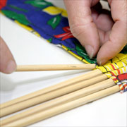 Passo 7: Coloque os hashis por dentro dos panos, intercalando as extremidades. Terminando uma base, emende-a a outra.